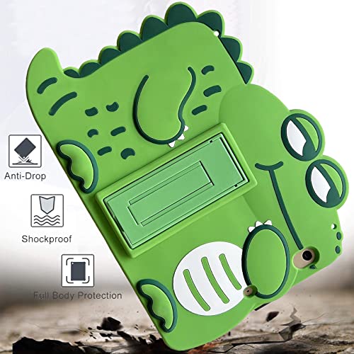 ESSTORE Custodia Bambini per iPad 9a/8a/7a Generazione 10,2 Pollici (2021/2020/2019)+Proteggi Schermo, 3D Carino Cartone Animato Silicone con Tracolla e Supporto Antiurto Cover, Dinosauro