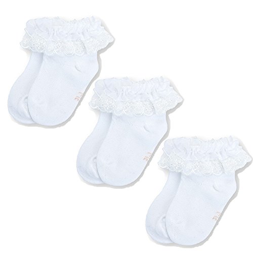 ESTAMICO 3 paia di calzini per neonato, in pizzo di cotone, per battesimo, Bianco (3 paia)., 0-6 Mesi