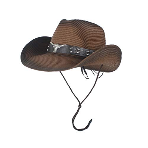 RZL Estate Sole Cappellini, Cappello da Cowboy Western da Uomo, Cappello Estivo da Cowgirl di Paglia, Cappellino da Cowboy for Cappelli Western da Uomo (Colore: caffè, Dimensione: 56-58)