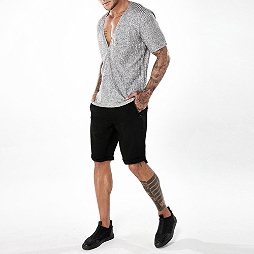 Estate Tinta Unita v Collare T-Shirt Uomo Moda Maglietta della Casual Abbigliamento Manica Corta Tees Uomo Grigio Chiaro XX-Large