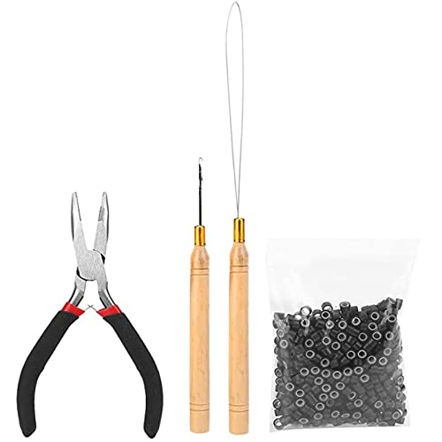 Kit di estensione per capelli, con micro anello, 500 pezzi micro anelli in silicone nero, fibbia di trazione, gancio per accessori morbidi per acconciatura