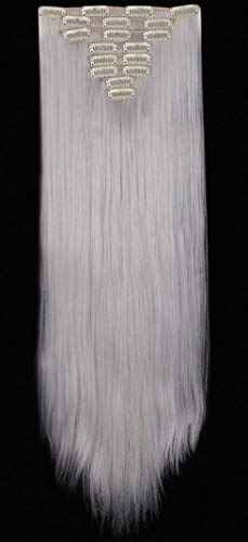 Estensione dei Capelli Testa Piena 8 Pezzi 18 Clip Clip in Hair Extensions Sintetico Resistente al Calore Parrucchino Lungo Dritto 66cm Grigio argento