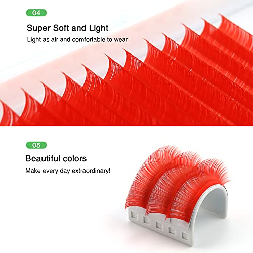 Estensione ciglia colore estensione ciglia 0,07 D ricciolo rosso ciglia estensioni 9-15mm mista classica estensione ciglia individuali per salone professionale da OBEYA (rosso 9-15mix)