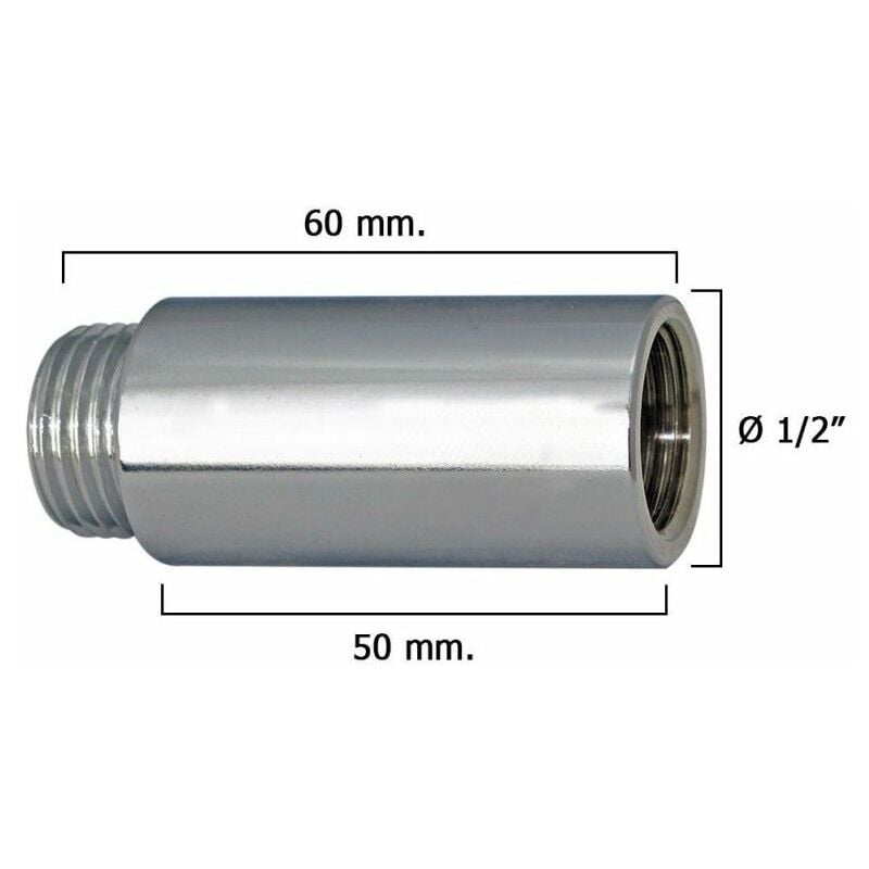 Prolunga tonda cromata 1/2x50. - Effetto: Cromo. - Misura 1/2 x 50. - Realizzata in metallo.