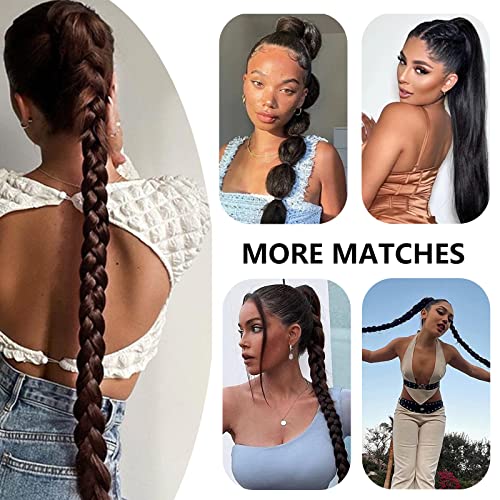 Estensioni Intrecciate Coda di Cavallo, Lunga Coda di Cavallo delle Trecce, Estensioni della Treccia a Coda di Cavallo, Coda di Cavallo Intrecciata Lunga, per Decorazione d'acconciatura(Marrone Nero)