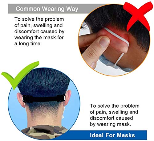 5 estensori per maschere, regolabili, anti-serraggio, fascia di supporto per la protezione dell'orecchio, con gancio antiscivolo in silicone (nero)