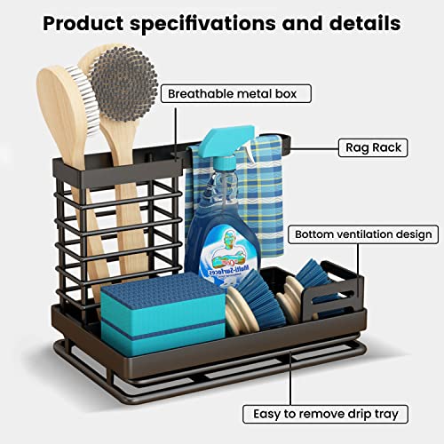 Esteopt Organizer Per Lavello Da Cucina, Organizer Portaoggetti Per Lavello Porta Spugne Lavello Cucina Porta Detersivi Kitchen Sink Organizer For Dish Soap, Sink Brush And Other Sink Accessories Nero