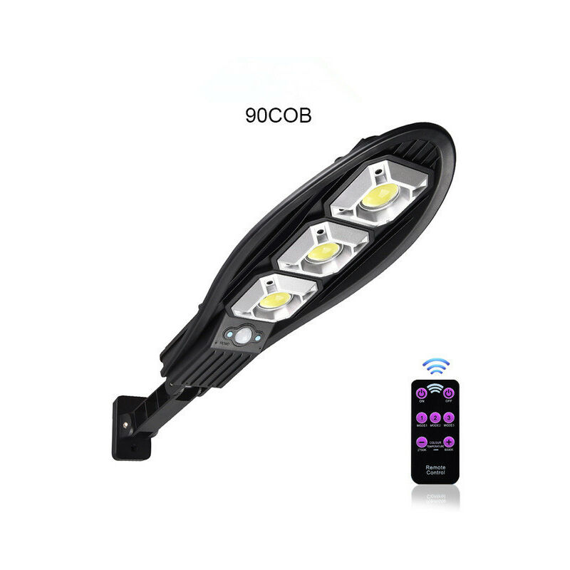 Parametri di quattro applique solari: Modello prodotto: 90 LED COB Materiale corpo lampada: PC + pannello solare ABS Specifiche: silicio monocristallino 5,5 V 1,43 W Specifiche batteria: 18650 Batteria al litio 3,7 V 1500 MAH / 3000 MAH / 4500 MAH / 8000 MAH con potenza di uscita della protezione da carica e scarica: 5 V/7 W Tempo di ricarica: 6 ore alla luce del sole Angolo di rilevamento PIR: 360 gradi Distanza di rilevamento: 10 metri, la luce è accesa per 15-30 secondi, quando nessuna è spenta;