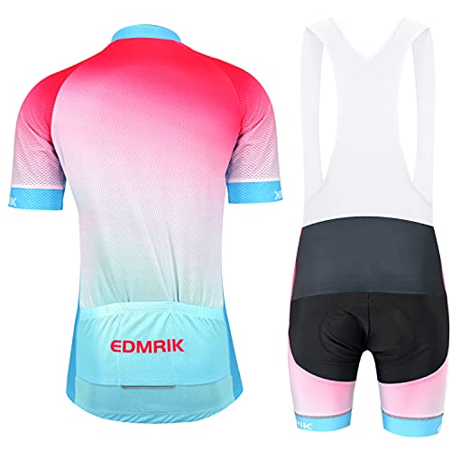 Estivo Tute Abbigliamento Ciclismo Donna, Traspirante Magliatte Ciclismo Manica Corta e 20D Gel Pad Pantaloncini con Bretelle Bici