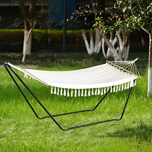 Estosa - Amaca Sospesa Da Giardino Dallas, Con Supporto In Acciaio E Policotone, Per Arredo Esterno, Terrazzo, Balcone, Da Campeggio,, 300 X 80 X 100h Cm (Nero + Beige)