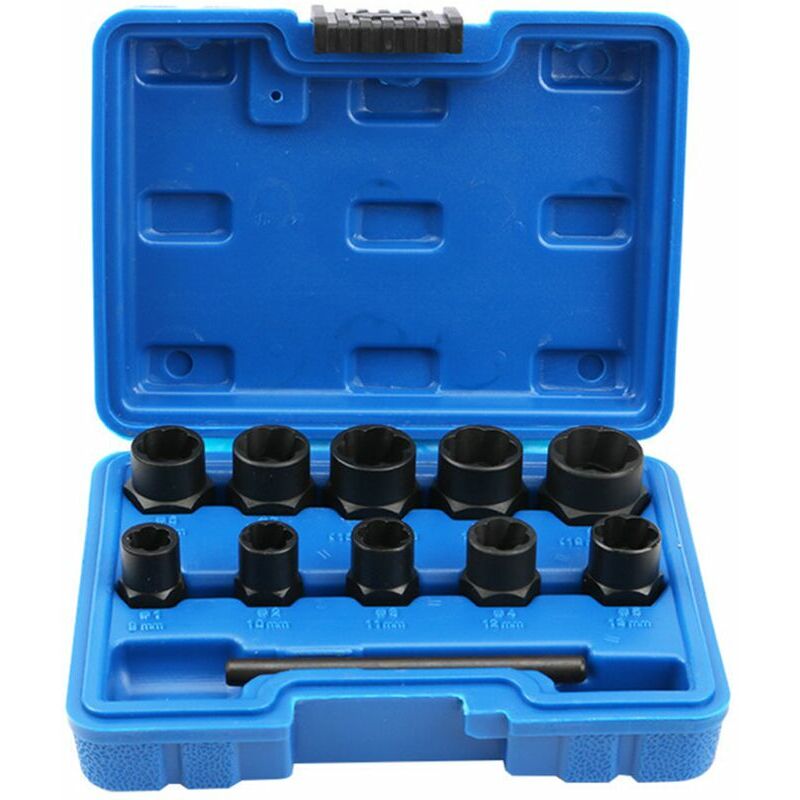 Materiale: realizzato in lega dura di alta qualità per un uso prolungato. Dimensioni: 9 mm / 10 mm / 11 mm / 12 mm / 13 mm / 14 mm / 15 mm / 16 mm / 17 mm / 19 mm. < p>Questo è un set di strumenti per impieghi gravosi da 11 pezzi per rimuovere dadi, bulloni, teste di viti, prigionieri, ecc. I denti tagliati a spirale forniscono una presa positiva per la rimozione di bulloni arrotondati o danneggiati. Realizzati in lega dura, sono ad alta resistenza e lunga durata. Questi utensili possono essere azionati con una chiave inglese o una presa metrica per un lavoro rapido.