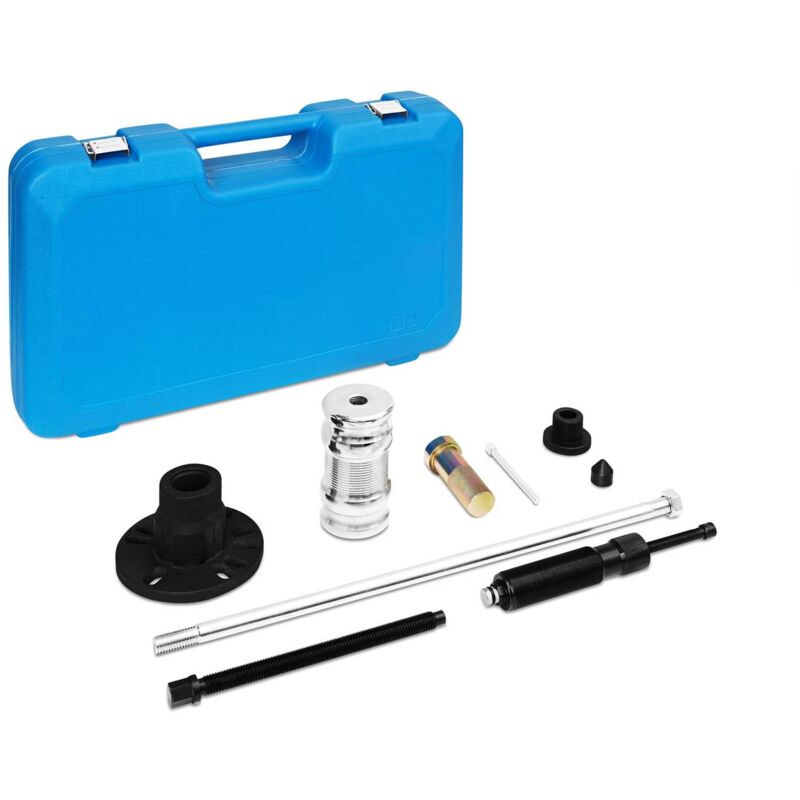 Estrattore mozzo ruota idraulico MSW-HP-01 di MSW Scatti rumorosi e ravvicinati sono indicatori di cuscinetti delle ruote difettosi e, come ogni parte soggetta a usura, devono essere sostituiti. Con l'estrattore per il mozzo ruota di MSW la sostituzione è rapida ed efficace. Questo strumento professionale per auto è adatto per cuscinetti e mozzi ruota di diverse dimensioni, quindi è immancabile in ogni officina automobilistica! Questo attrezzo è l'aiuto ottimale per la sostituzione del mozzo ruota, in quanto ne permette lo smontaggio e il successivo montaggio in modo facile e professionale. Il set contiene utensili a pressione compatibili tra loro con i quali è possibile sostituire efficacemente i cuscinetti delle ruote. L'estrattore a martello permette una sostituzione estremamente semplice ed efficace del cuscinetto della ruota. È possibile lavorare sul mozzo ruota anche da installato. Questo strumento è particolarmente adatto ad alberi di trasmissione bloccati e arrugginiti. Il set