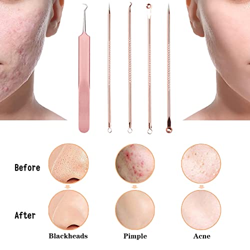 Estrattore punti neri 5 Pezzi, Strumento Professionale Per rimuovi punti neri, Set Di Strumenti Per La Rimozione Di Punti Neri In Acciaio Inossidabile Per Punti Neri, Rimozione Di Brufoli(Oro Rosa)