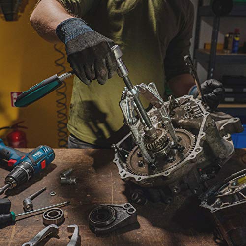 APPLICAZIONE - Questo estrattore può essere impiegato sia per estrarre ruote dentate, cuscinetti a sfere, pulegge, ruote, dischi e componenti simili, che per estrarre cuscinetti a sfere, relativi anelli esterni o boccole dai fori. L'estrattore è mobile e utilizzabile sia come estrattore esterno che interno.