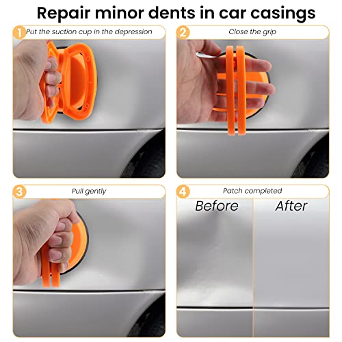【Ampia Applicazione】la ventosa è un buon strumento per la rimozione dell'ammaccatura dell'auto. Inoltre, questo dispositivo di rimozione delle ammaccature a ventosa funziona perfettamente per spostare mobili, vetro, piastrelle e altro ancora. Può essere utilizzato anche come maniglia per porta/finestra, porta telefono, ecc.