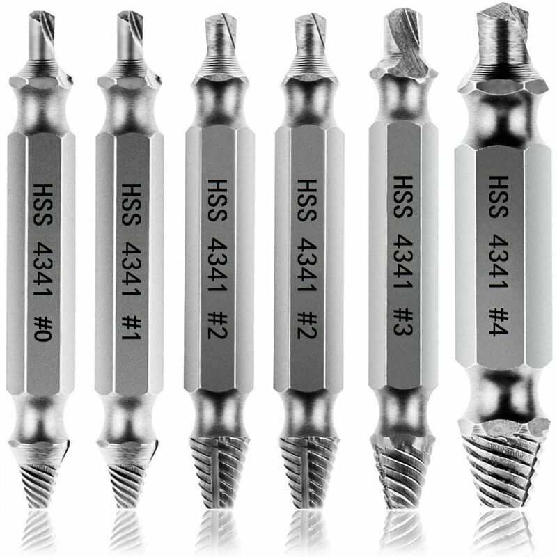 6 pezzi - Funziona su quasi tutte le dimensioni delle viti - Il set di estrattori per viti in set da 6 pezzi funziona con la punta più comunemente usata e qualsiasi estrattore per viti, quale vite o bullone. 【 Qualità Premium】Realizzato da HSS 4341#, la durezza è 62-63 HRC per prestazioni di lunga durata. 【Facile da usare】Utilizzare la punta del trapano per praticare un foro profondo nella testa della vite, quindi invertire l'estrattore della vite in senso antiorario nella vite danneggiata finché non si libera. 【Efficiente】Kit di estrazione della vite ad alta durezza, puoi rimuovere facilmente la vite in viscosa arrugginita e rotta in pochi secondi. 【Include custodia 】 Viene fornito in una scatola nera compatta e attraente per una comoda conservazione e un regalo di buon gusto. Estrattori per viti danneggiate Uno strumento perfetto per chiunque abbia costantemente a che fare con i progetti Ci sono bulloni arrugginiti e teste delle viti, bulloni rotti e una miriade di altri problemi.