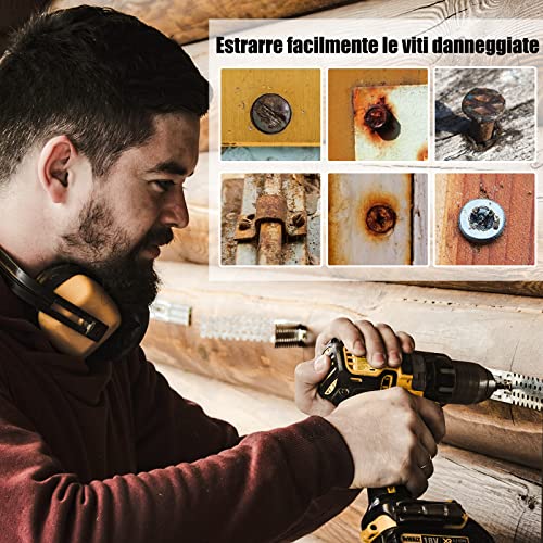 【22 Pezzi】 Funziona con qualsiasi trapano e vite o bullone di qualsiasi dimensione. Adatto per viti a testa esagonale, viti a testa quadrata, viti per legno, viti a testa esagonale, viti meccaniche, viti per lamiera e altre viti. Set completo di estrattori per bulloni di facile estrazione e in grado di soddisfare le tue esigenze uniche.