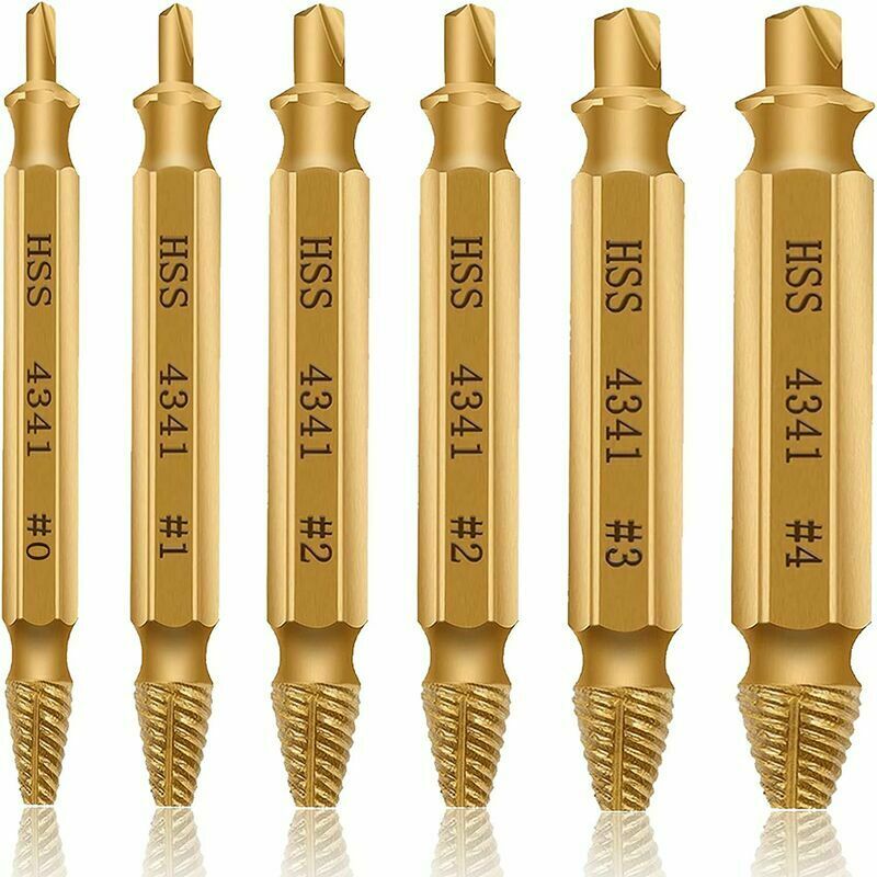 6 PEZZI - FUNZIONA CON QUASI TUTTE LE MISURE DI VITI - Il set di estrattori per viti da 6 pezzi funziona con la punta più comunemente usata e qualsiasi vite o vite. Extra n. 2 per il backup compatibile utilizzato di frequente 【Facile da usare】 Utilizzare un trapano per praticare un foro profondo nella testa della vite, quindi ruotare l'estrattore per viti in senso antiorario nella vite danneggiata, finché non si allenta 【Qualità Premium】 Realizzato da HSS 4341 #, durezza 62-63 HRC per prestazioni di lunga durata 【Efficiente】 Kit estrattore per viti ad alta durezza, è possibile utilizzare la viscosa arrugginita e rotta avvitare in pochi secondi