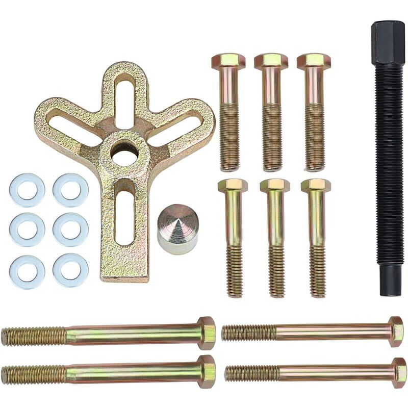 Include 1 pz giogo, 1 pz bullone di spinta, 1 pz punta della vite centrale. 3 bulloni per estrattore da 1/4 x 2 pollici, 3 bulloni per estrattore da 5/16 x 2 pollici, 2 bulloni per estrattore da 1/4 x 3 pollici, 2 bulloni per estrattore da 5/16 x 4 pollici. Tutte le punte sono di precisione meccanica, temprate e temperate. La vite centrale ha un perno girevole e rimovibile. L'estrattore del bilanciere ha una ruota a quattro scanalature che può essere utilizzata in quasi tutti i configurazione. Le due diverse dimensioni offrono la versatilità necessaria. Lo strumento consente una pressione uniforme che previene danni alle parti, il giogo consente l'applicazione a 2 o 3 fori. Progettato per consentire una rimozione facile e semplice di equilibratori armonici, pulegge dentate, volanti e pulegge albero motore.