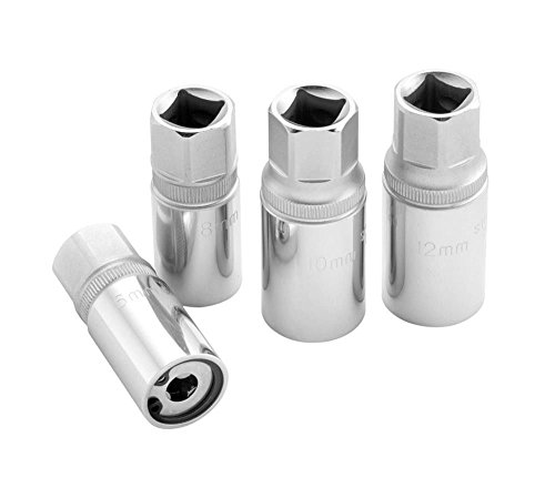SET 4 ESTRATTORI PRIGIONIERI A RULLO VITE ESTRATTORE 1/2" 6 8 10 12 MM Pratico set fornito in scatola di plastica rigida di ben 4 estrattori prigionieri a rullo dalle misure più comuni, realizzati in Chromo Vanadium. Caratteristiche: Attacco: 1/2” Misure estrattori: 6-8-10-12 mm
