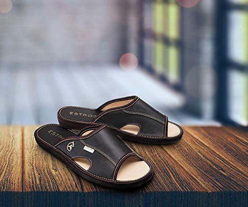 ESTRO Pantofole Ciabatte Uomo Casa Pantofola Ciabatta Vera Pelle Suola di Memoria Verano (Cacao, 44)