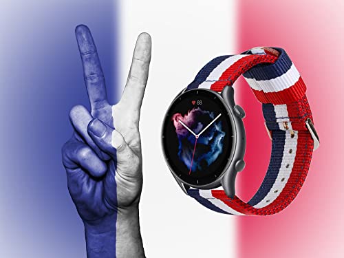ESTUYOYA - Cinturino da 22mm Compatibile con Xiaomi Amazfit GTR 3/Stratos 3/2/2S/GTR/Pace Bracciale in nylon Colori della Bandiera Francese Sportivo Elegante