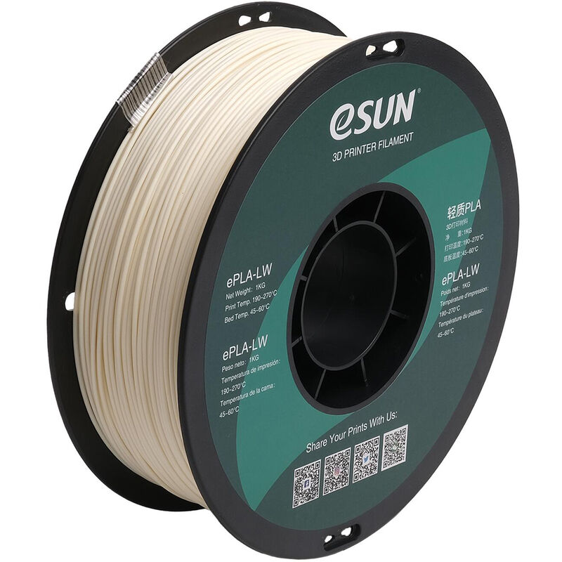 Caratteristiche: Leggero e a bassa densità: ePLA-LW ha applicato la tecnologia di schiumatura attiva, la densità è di soli 0,54 g/cm3. Il più alto rapporto di volume di schiuma è del 220% e quando si stampa lo stesso modello di volume, 1 rotolo di ePLA-LW può essere utilizzato come 2,2 rotoli di PLA ordinario. Senza intasamenti, senza deformazioni e meno grovigli: l'avvolgimento meccanico completo e un rigoroso esame manuale garantiscono l'assenza di grovigli ed evitano la rottura e lo scatto del filamento. Il filamento eSUN ePLA-LW è avvolto in modo ordinato, si scioglie bene, si alimenta in modo fluido e costante senza intasare l'ugello o l'estrusore. Non si sovrappone né si aggroviglia, non si screpola. Ha un'eccellente velocità di stampa per modelli di stampa di grandi dimensioni e non necessita di una camera a temperatura costante. Buona adesione interstrato ed effetto di stampa opaco: rispetto al filamento PLA di legno, il filamento ePLA-LW ha un'adesione interstrato più stabile
