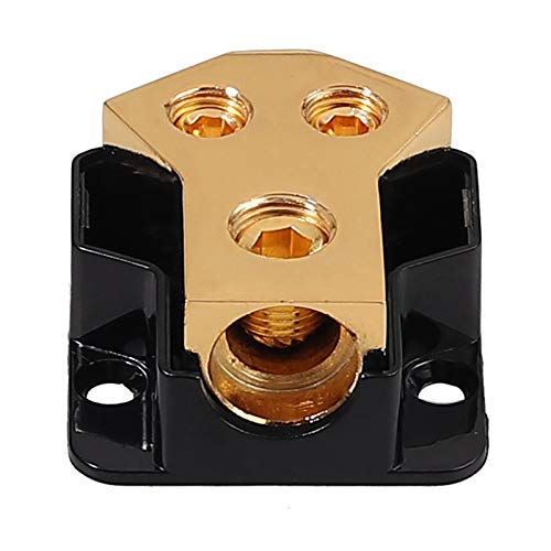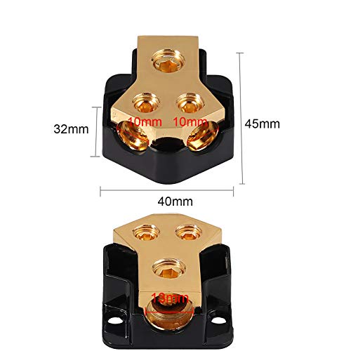 ESYNiC Blocco Distributore 1 Ingresso 0/2/4 Gauge a 2 Uscite 4/8 Gauge AWG per Amplificatore di Potenza da Auto Splitter Blocco Distribuzione 2 Vie per Auto Alimentazione Sistema Audio Filo di Terra