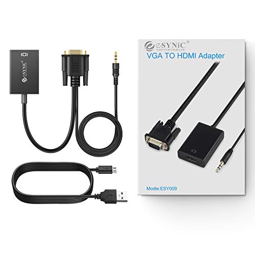 ESYNiC Convertitore VGA a HDMI 1080P Cavo Adattatore da VGA Maschio a HDMI Femina e 3.5mm Audio con USB Cavo di Alimentazione per HD HDTV TV AV DVD PC