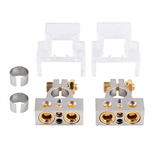 ESynic 2pz Morsetti Terminali Connettori per Batteria Auto Positivo Negativo (Argento con Rondelle 0/2/8AWG)