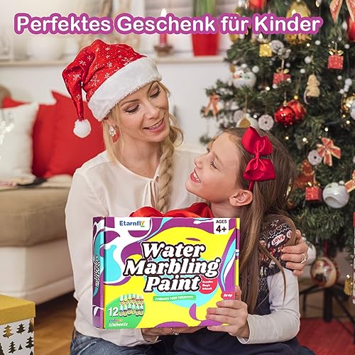 Etarnfly Pittura per marmorizzazione ad acqua per bambini, set fai da te per bambini, 12 colori, set da pittura ad acqua, regali per ragazze 8 9 10 11 12 anni