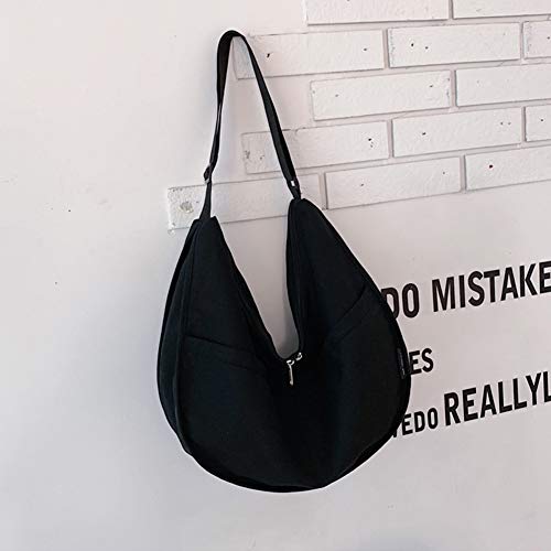 ETbotu - Borsa a tracolla Lady Fashion Crescent Moon Solid Color Canvas, colore nero