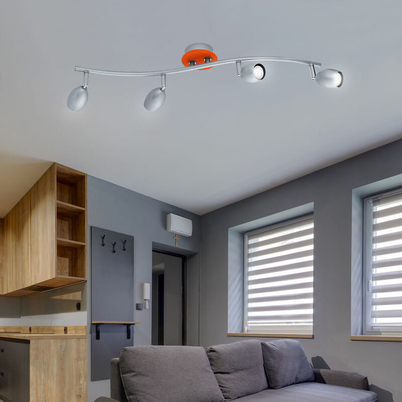 Descrizione Lampada da soffitto e da parete di alta qualità con faretti mobili La classica costruzione in acciaio consente a questa lampada di adattarsi in modo ottimale a qualsiasi spazio abitativo immaginabile ed è quindi la scelta ideale per quasi tutte le strutture I punti attaccati a questo corpo colpiscono ancora per le loro opzioni di regolazione individuali. In questo modo, la loro efficacia viene utilizzata individualmente. Che si tratti di ufficio, soggiorno o sala da pranzo, questa magnifica lampada da soffitto si adatta perfettamente alla tua zona giorno. I faretti LED consumano solo una quantità minima di elettricità e hanno un consumo persino inferiore rispetto alle lampade a risparmio energetico. Questo non solo protegge l'ambiente, ma anche il tuo portafoglio. È inclusa una sorgente luminosa a LED di alta qualità. Dettagli lampada • Tipo di lampada: plafoniera e applique • Materiale: acciaio • Colore: argento, arancione • Spot mobili • Dimensioni lunghezza in mm: 620