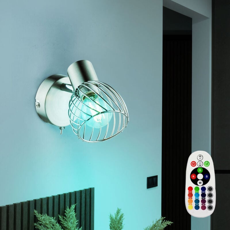 Descrizione Lampada da parete moderna con spot orientabile. Questo faretto da parete cromato attira l'attenzione grazie al paralume a forma di gabbia di metallo. Grazie allo spot orientabile e all'interruttore separato sulla base, questa lampada può essere utilizzata in molti modi, ad esempio come luce da lettura in soggiorno o come luce notturna in camera da letto o camera degli ospiti. Il telecomando in dotazione può essere utilizzato per impostare la sorgente luminosa LED RGB in diversi colori e garantire così un'atmosfera piena di illuminazione. Rispetto alle normali luci LED i faretti consumano una minima quantità di elettricità e hanno un consumo persino inferiore rispetto alle luci a risparmio energetico Questo protegge l'ambiente e il tuo portafoglio Una lampada LED RGB di alta qualità a risparmio energetico e un telecomando per la luce bianca e il controllo RGB sono inclusi nella fornitura. Dettagli lampada • Tipo di apparecchio: lampada da parete • Materiale: cromo, nichel