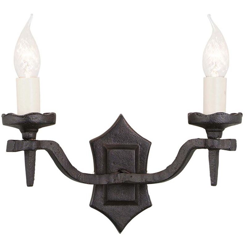 Descrizione Questi autentici accessori artigianali offrono una miscela di robustezza del ferro battuto ed eleganza artigianale per conferire un aspetto davvero medievale. Dettagli • Tipo di prodotto: lampada da parete • Altezza in cm: 16 • Larghezza in cm: 31 • Lunghezza in cm: 15 • Materiale: ferro battuto • Finitura: Nero • Numero di prese: 2 • Potenza massima: 60W • Presa: E14 • Lampadina inclusa: no • Voltaggio: 220-240V 50hz • Classe di protezione: Classe I