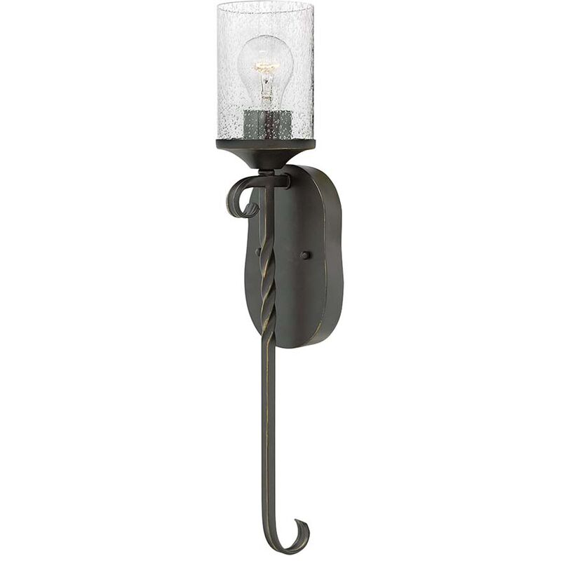 Descrizione Casa sfrutta al massimo i suoi dettagli raffinati: vetro trasparente shabby, ferro battuto intrecciato e volute forgiate a mano con una finitura nera invecchiata completano il suo fascino rustico con un tocco spagnolo. Dettagli • Posizione: Interno • Colore superficie: Nero antico • Materiale: Alluminio, vetro trasparente • Numero di fiamme: 1 • Potenza: 60 W (Watt) • Tipo di presa: E27 • Dimensioni AxLxL: 58,6 cm x 12,8 cm x 12,8 cm