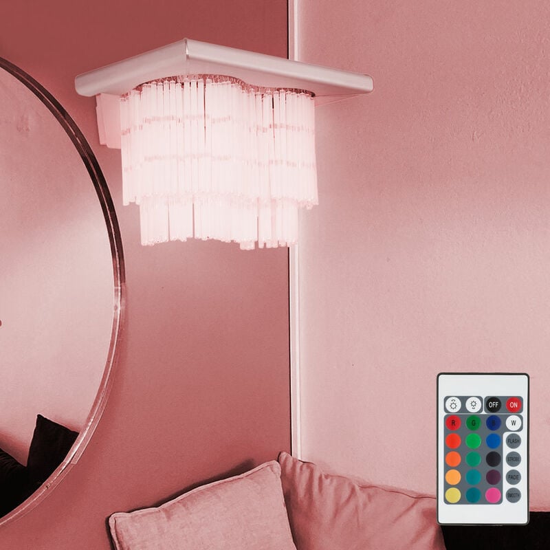 Descrizione Elegante lampada da parete con pendenti in vetro per il tuo soggiorno. Questa lampada elegante attira davvero l'attenzione perché la tenda in vetro trasparente attira l'attenzione. Utilizzando il telecomando incluso, la lampadina LED RGB può essere regolata su diversi colori, fornendo così un'illuminazione suggestiva. Nella fornitura sono incluse due lampade LED RGB, incluso il telecomando per la luce bianca e il controllo RGB. Lampada dettagli • Tipo di lampada: applique • Materiale: alluminio • Paralume: vetro satinato • Colore: argento, bianco • Grado di protezione: IP20 • Larghezza x profondità x altezza in cm: 40,5 x 22,7 x 23,5 • Attacco: 2x E27 • Lampadine incluse: sì • Potenza lampada: 2 x 8,5 watt • Flusso luminoso: 2x 806 lumen • Colore della luce: bianco caldo • Telecomando: Solo per la lampada • Alimentazione: 220-240V, 50-60 Hz Dettagli lampadine • Tipo di lampadina: LED • Attacco: E27 • Forma: Sfera • Materiale: plastica • Colore bianco • Flusso luminoso: 806