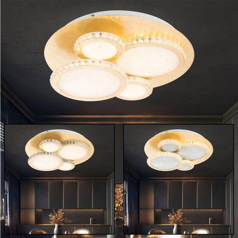Descrizione Si tratta di una plafoniera molto elegante e futuristica, realizzata in metallo color foglia oro e scintillanti cristalli K5. Il paralume è composto da quattro anelli metallici rotondi attaccati con cristalli K5 trasparenti. Tilo è particolarmente adatto per le stanze moderne e grazie al suo linguaggio di design sorprendente e innovativo diventa un accattivante eye-catcher. Il diametro di questa splendida lampada è di 4,5 cm. L'intensità luminosa di questa lampada da interni può essere commutata e regolata in tre livelli tramite un apposito interruttore a parete (non incluso). Grazie al 36 watt LED, la plafoniera fornisce una luce di 2700 lumen. A una temperatura di colore di 3000K, l'apparecchio emette una piacevole luce bianca calda. Una sorgente luminosa LED di alta qualità a risparmio energetico è integrata l'apparecchio di illuminazione. Dettagli lampada • tipo di lampada: plafoniera • materiale: metallo• Paralume: acrilico, cristalli K5 • Colore: foglia oro• 3-step