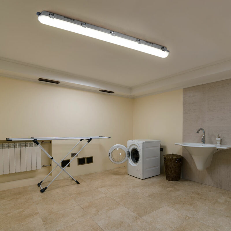 Descrizione Plafoniera LED SMD per l'utilizzo in capannoni industriali, officine e magazzini. Grazie all'elevato grado di protezione IP65, questa luce diffusa è ideale come luce per ambienti bagnati e umidi. Con ben 5760 lumen, ogni area, che si tratti di un posto di lavoro, cantina o garage, è illuminata in modo ottimale. Una lampada LED SMD con una temperatura di colore di 4000 Kelvin è già installata in modo permanente nella lampada. L'illuminante è installato in modo permanente nella lampada! Particolare lampada • Tipo di apparecchio: apparecchio diffusore • Materiale: plastica • Colore bianco • Grado di protezione: IP65 • Collegamento in serie fino a 8 luci • Lunghezza x larghezza x altezza in cm: 150 x 7,8 x 7,2 • Peso: 1,73 kg • Illuminante: 1x LED SMD • Lampadina inclusa: sì • Potenza lampada: 1x 48 watt • Flusso luminoso: 1x 5760 lumen • Colore della luce: bianco neutro • Alimentazione: 230V, 50Hz Dettagli lampadine • Tipo di sorgente luminosa: LED SMD • Presa: scheda LED
