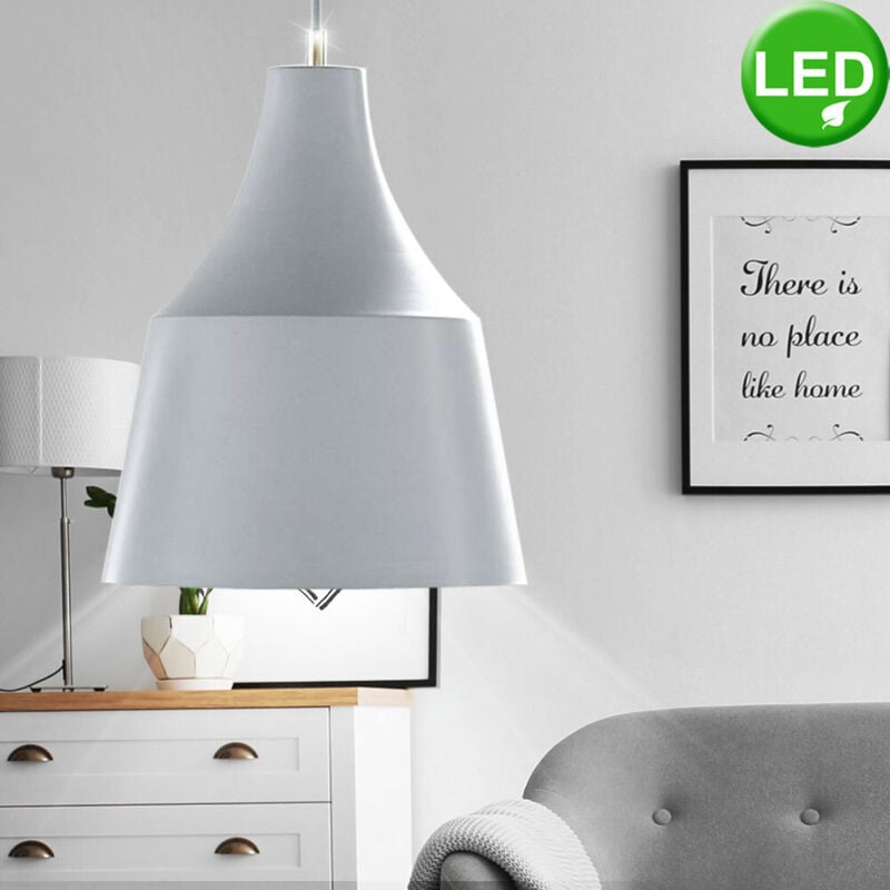 Descrizione Elegante apparecchio a sospensione per arredi interni Questa lampada a sospensione colpisce per il suo design accattivante e il paralume in metallo di alta qualità. La lampada è ideale per il tuo soggiorno, zona pranzo o cucina. Dai un nuovo accento alle tue quattro pareti con questa lampada a sospensione ! Rispetto alle luci normali, i faretti LED consumano un minimo Quota di energia elettrica e sono ancora più bassi nei consumi rispetto alle lampade a risparmio energetico. Questo protegge l'ambiente e il tuo portafoglio. È inclusa una sorgente luminosa a LED di alta qualità a risparmio energetico. Dettagli lampada • tipo di lampada: lampada a sospensione • materiale: metallo • colore: grigio • classe di protezione: IP20• cavo tessile • dimensioni DxH in cm: 32x42• lunghezza cavo in cm: 300 • presa: 1x E27 • lampada inclusa: si • potenza lampada: 1x 11Watt• flusso luminoso: 950 lm (lumen)• colore luce: bianco caldo • alimentazione: da 220V a 240V, da 50Hz a 60 Hz dettagli