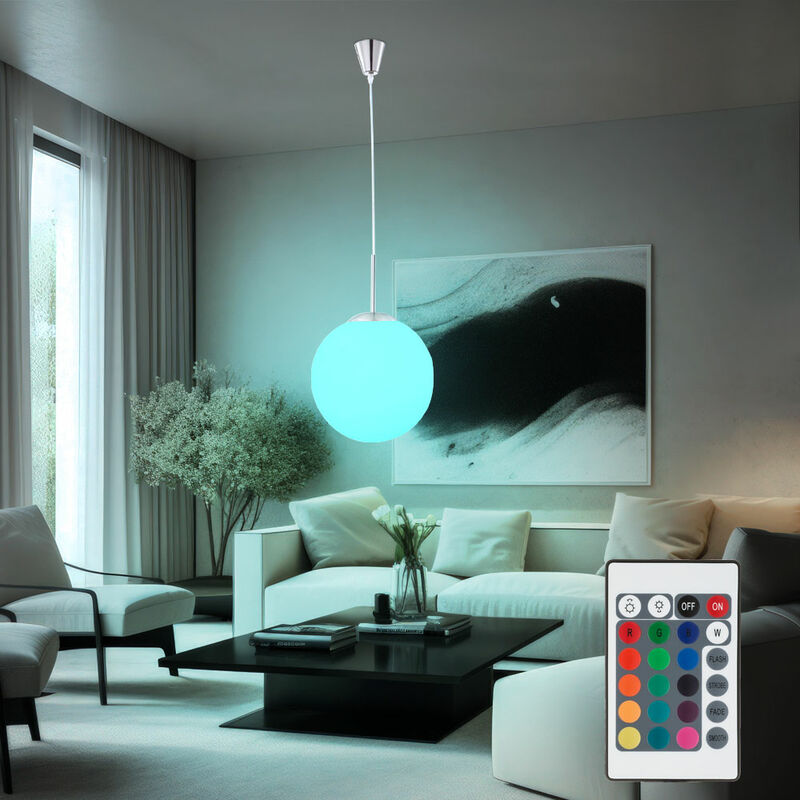 Descrizione Lampada a sospensione di design con una grande sfera luminosa opale. Il vetro opalino smerigliato di cui è composta la sfera produce una luce piacevole e priva di abbagliamento per una piacevole atmosfera di benessere. Questa lampada si adatta elegantemente a quasi tutti gli arredi domestici e ad ogni stanza. La lampadina LED è inclusa! dettagli • Tipo di apparecchio: apparecchio sferico • Materiale: metallo, vetro smerigliato • Colore: opale bianco, nichel • Grado di protezione: IP20 • Classe di protezione: 1 • Diametro x altezza in cm: 25x180 cm • Illuminante: 1x LED • Lampadina inclusa: sì • Intensità luminosa: 806 lumen • Colore della luce: bianco caldo • Alimentazione: 230V, 50Hz LED dettagli lampadina • Tipo di sorgente luminosa: LED • Attacco: E27 • Forma: sfera (bianco-opale) • Materiale: plastica, alluminio • Flusso luminoso: 806 lm (lumen) • Consumo energetico: 8,5 kWh/1000h • Temperatura colore: 3000 K (Kelvin) • Colore della luce: bianco caldo • Consumo