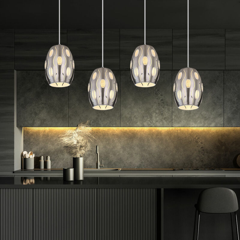 Descrizione Grande effetto luminoso - Questa lampada a sospensione colpisce per il suo design elegante in oro nero e per i cristalli acrilici disposti con cura. Con la base in colore coordinato, questa lampada ha una lunghezza totale di 120 cm. La lampada ha quattro attacchi E27, che possono essere equipaggiati con qualsiasi lampadina (max. 4x40W). Le lampade LED sono particolarmente adatte per l'uso in apparecchi aperti senza causare abbagliamento. Risparmiare elettricità e longevità è un altro effetto positivo e quindi è garantita un'atmosfera di benessere. Le lampadine non sono incluse nella fornitura. Particolare lampada • Tipo di lampada: lampada a sospensione • Materiale: metallo, cristalli acrilici • Colore: nichel opaco, trasparente • Grado di protezione: IP20 • Classe di protezione: 1 • 4 fiamme • Lunghezza x larghezza x altezza in cm: 90x15x120 • Prese: 4x E27 • Lampadina inclusa: n • Potenza della lampada: 4x massimo 40 watt • Voltaggio: 230V, 50Hz