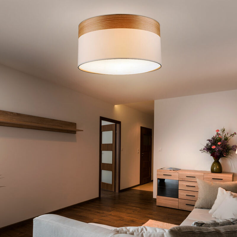 Descrizione Plafoniera classica con paralume beige in tessuto e legno. Grazie al suo design, puoi utilizzare questa lampada in quasi tutti gli spazi abitativi immaginabili. Grazie al mix di materiali di tessuto e legno marrone, la lampada attira l'attenzione. Si distingue davvero sopra il tavolo del salotto o della sala da pranzo. Dettagli luce • Tipo di luce: Plafoniera • Montatura: Nichel opaco • Paralume: Legno, tessuto beige • Dimensioni diametro x altezza in cm: 40x25 • Prese: 3x E27 • Lampadine incluse: Sì • lampadine: 3x 10 watt • Flusso luminoso: 3x 806 lumen • Colore della luce: bianco caldo • Tensione di esercizio: 220-240 volt, 50-60 hertz Dettagli sorgente luminosa • Tipo di lampadina: LED • Attacco: E27 • Design: Sfera (bianco-opale) • Materiale: Plastica • Flusso luminoso: 806 lm (lumen) • Consumo energetico: 10 kWh/1000h • Temperatura colore: 2700 K (Kelvin) • Colore luce: bianco caldo • Resa cromatica (Ra): 80 • Consumo energetico nominale: 10 W (Watt) • Risparmio