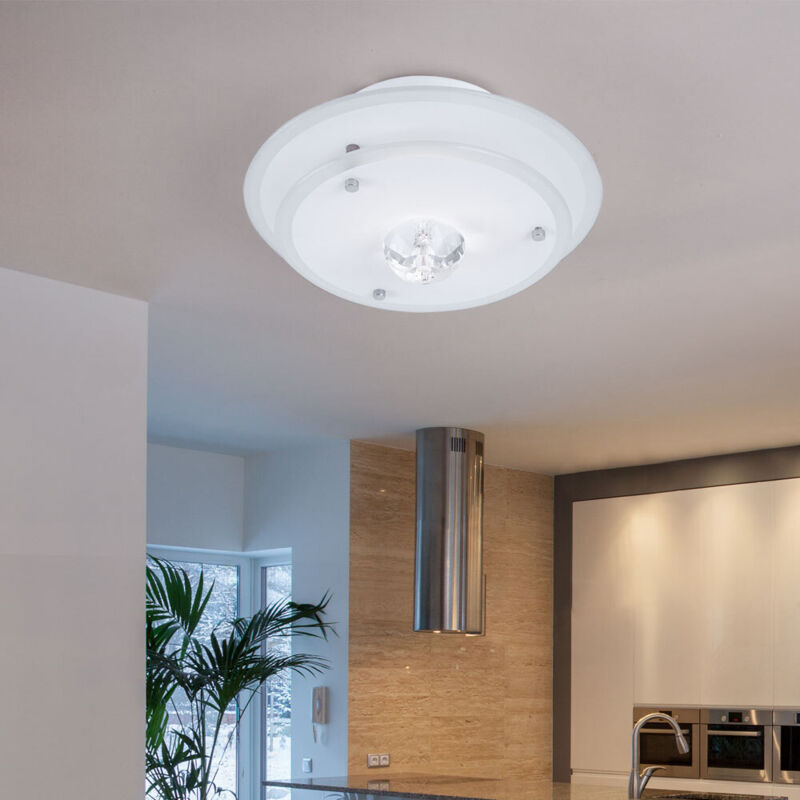 Descrizione Plafoniera moderna dalla forma rotonda. Realizzata in metallo e vetro, questa lampada colpisce principalmente per la sua funzionalità e luminosità. Semplice ed elegante nel design, queste sono le caratteristiche più importanti di questa plafoniera. Questa lampada si adatta perfettamente a quasi ogni spazio abitativo e stile di arredamento e le conferisce un tocco corrispondente grazie alle applicazioni diamantate. La lampada non è inclusa nella fornitura. Dettagli • Tipologia: plafoniera • Materiale: vetro, metallo • Diametro: 220 mm • Presa: 1x G9 • Lampadine incluse: No • Potenza: massimo 1x 42 watt • Alimentazione: 230V,50Hz