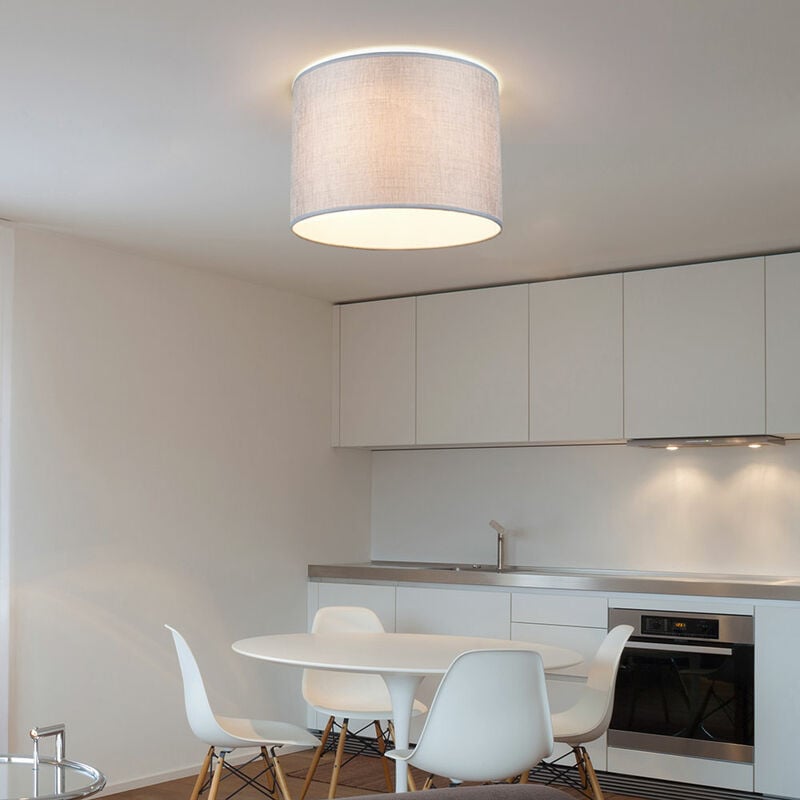 Descrizione Elegante plafoniera per il tuo salotto. Illumina il tuo spazio abitativo con questa bellissima plafoniera. Il paralume in tessuto e acrilico crea accenti eleganti e mostra buon gusto. Goditi una luce piacevole nel tuo spazio abitativo. Nella lampada possono essere utilizzate tre lampadine con attacco E27 e una potenza massima di 60 watt ciascuna. Le lampadine non sono incluse nella fornitura. Particolare lampada • Tipo di lampada: plafoniera • Materiale: metallo, bianco • Paralume: tessuto grigio, acrilico satinato • Grado di protezione: IP20 • Diametro x altezza in cm: 35x27 • Peso: 0,94 kg • Prese: 3x E27 • Lampadina inclusa: No • Potenza della lampada: 3x massimo 60 watt • Alimentazione: 220-240V, 50-60Hz