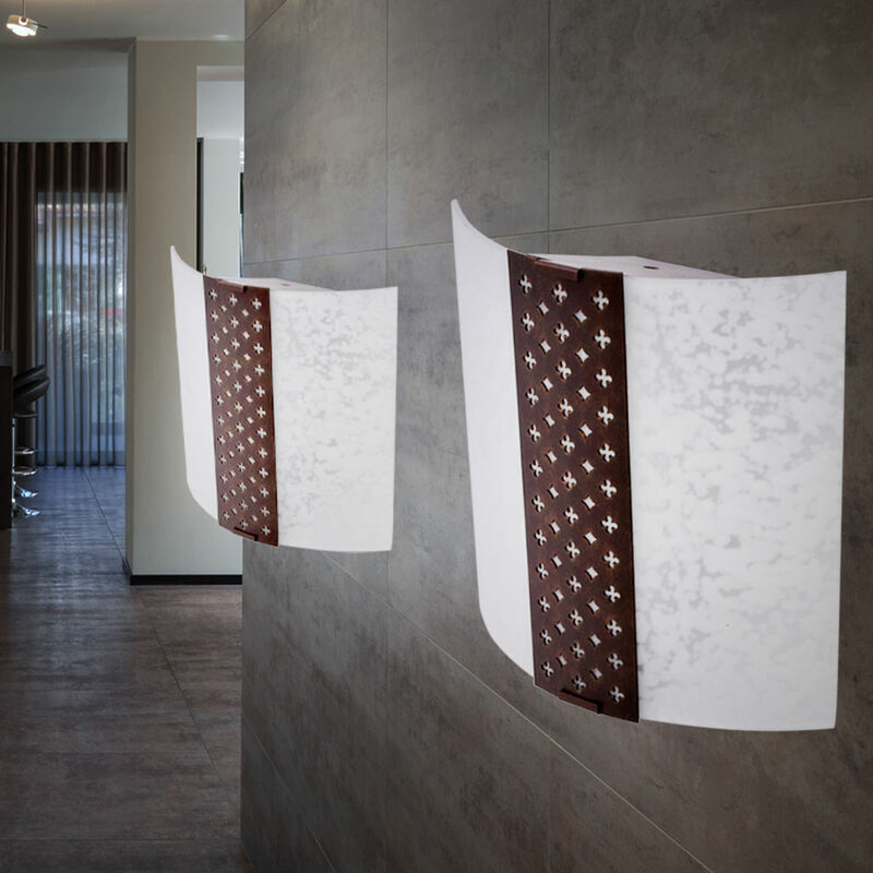 Descrizione Questa moderna plafoniera attira davvero l'attenzione nella tua zona giorno. Versatile nell'uso, questa lampada crea un bellissimo gioco di luci e ombre grazie alla striscia di metallo marrone con motivo decorativo fustellato. La fornitura comprende due applique! Dettagli lampada • Tipo di lampada: plafoniera • Materiale: metallo con decorazione • Colore: marrone • Paralume: vetro bianco • Grado di protezione: IP20 • Larghezza x altezza x profondità in cm: 26,4 x 25,4 x 8,9 • Presa: 1x E27 • Lampadina inclusa: sì • Potenza della sorgente luminosa a LED: 1x 11 watt • Flusso luminoso LED: 1x 950 lumen • Colore della luce: bianco caldo • Alimentazione: 220-240V, 50-60Hz Dettagli Lampadine a LED • Tipo di sorgente luminosa: Samsung SMD LED • Attacco: E27 • Forma: sfera (bianco-opale) • Materiale: plastica • Flusso luminoso: 950 lm (lumen) • Consumo energetico: 11 kWh/1000h • Temperatura colore: 3000 K (Kelvin) • Colore della luce: bianco caldo • Resa cromatica (Ra): 80