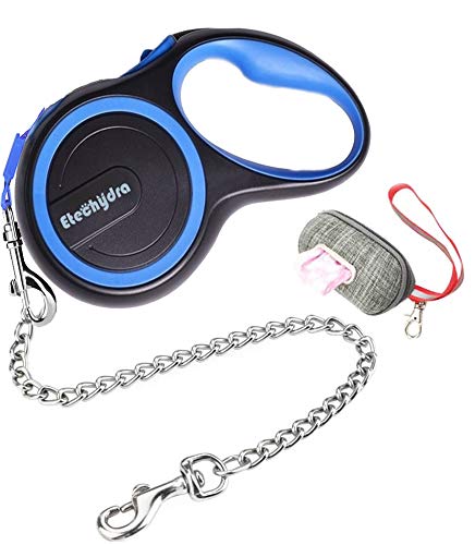 Etechydra Guinzaglio per cani retrattile per cani da 5 m, nastro di nylon per cani da compagnia guinzaglio per cani con catena anti-morso per cani di media e grande taglia, blu