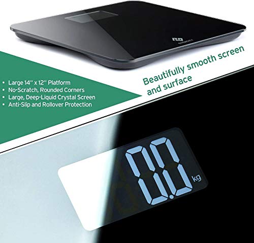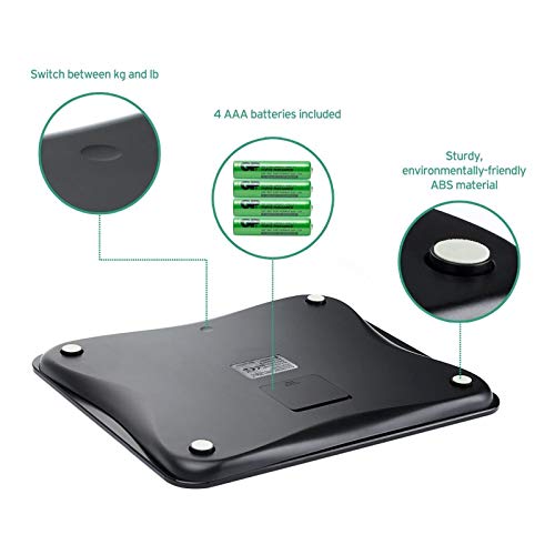 Etekcity Bilancia Pesa Persona Digitale 200kg/440lb, Bilancia Pesapersone Elettronica Alta Precisione, Piattaforma/LCD Display Retroilluminato Più Grande con Visione Ampia, Metro Nastro Incluso, Nera