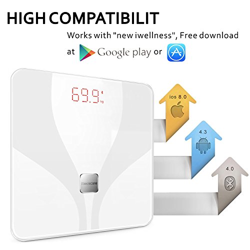 Etekscale Bilancia Pesapersone Intelligente e Bluetooth Misura 8 Parametri Corporei Display LCD con App Gratis per Dispositivi iOS e Android- Bianca
