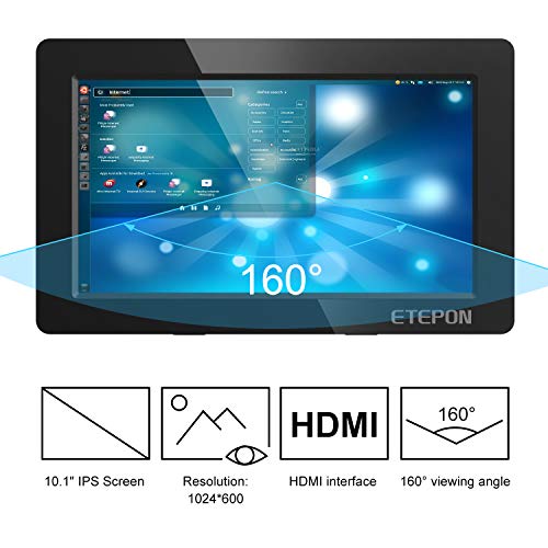 ETEPON - Monitor Raspberry Pi da HD LCD 1024 x 600 HDMI con guscio ultra sottile per Raspberry Pi 3 2 modello B + 3B 2B B + A + A (EP010)